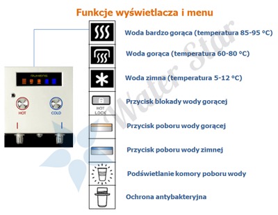 Dystrybutor przygotowuje do bezpośredniego spożycia wodę zimną (5 - 12°C) i gorącą (89 - 95°C).