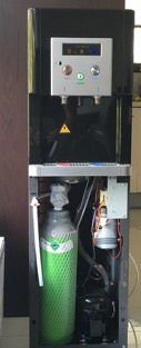 Dystrybutor produkuje wodę nasyconą CO2. Produkcję wody gazowanej uruchamia specjalny przycisk umieszczony na obudowie.
